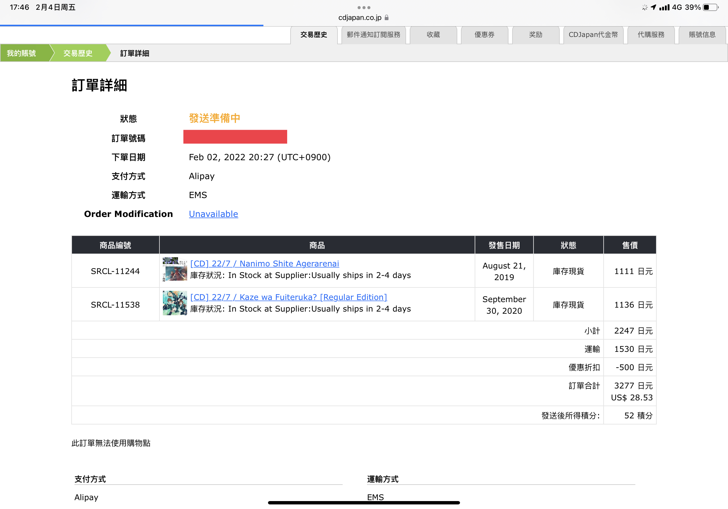 于是百度一通,却发现大部分转运公司一律禁止转运光盘(不明所以)。无奈之下查询得知直邮允许邮寄对中国政治、经济、文化、道德没有危害的光盘,便查到了CDJapan网,并且还发现支持Alipay。